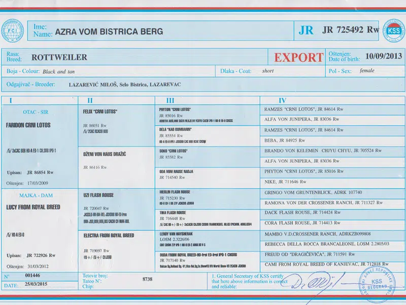 We took a chance on Azra and we will never regret our choice to make her part of our breeding program. She is one of our top five (5) favorite dames of all time. Azra will forever live and be part of our family.