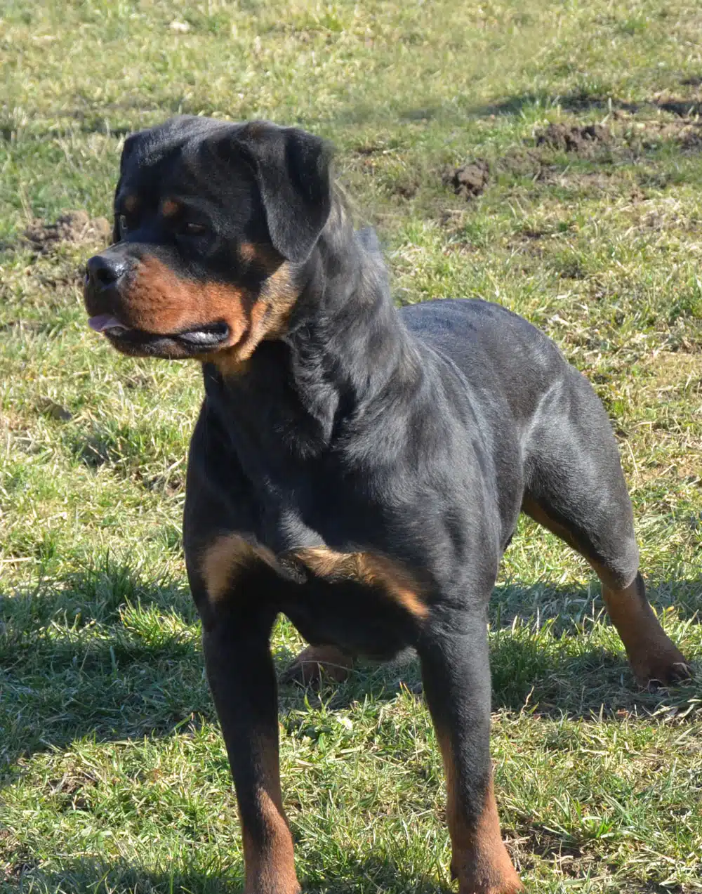 Cala normally produces larger head rotties with short stocky bodies that are well within breed standard.