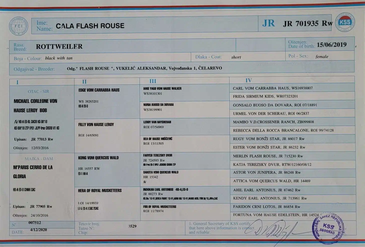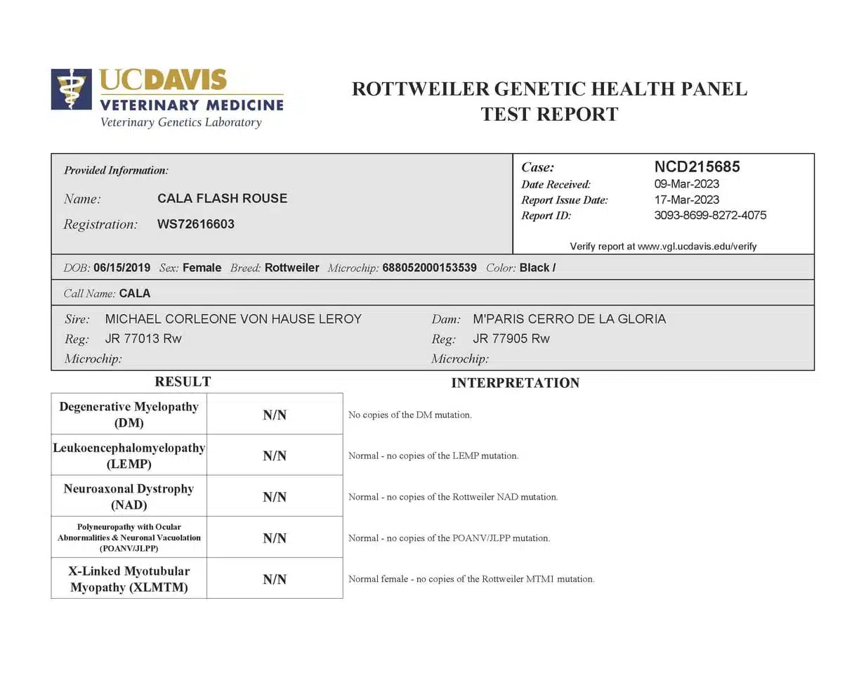 Cala Flash Rouse is a fun Rottie that loves to work, protect and play with her people. Cala really brings back old school German Rottweiler values with her outstanding temperament.