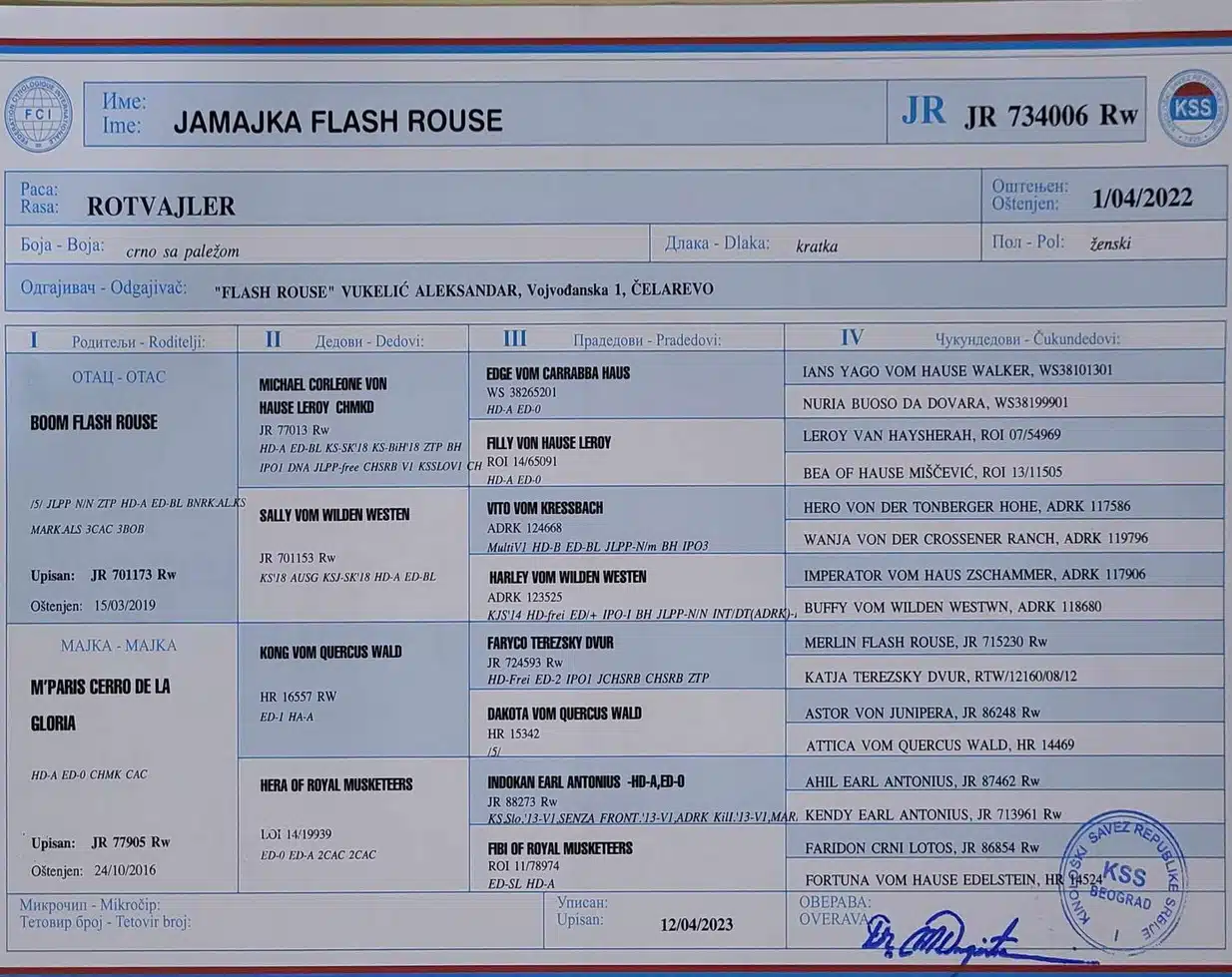 Rottweiler puppies » Rottweiler » Jamajka Flash Rouse Jamajka Flash Rouse Gemma Coming Soon . . . Gallery Information Owner: King Rottweilers llc Sire: Boom Flash Rouse Dame: M'Paris Cerro De La Gloria AKC: Pending Hip Rating: HD A Elbow Rating: ED 0 Coat Length: Clear (S/S) - Parentage Hyperuricosuria: Clear (N/N) - Parentage D. Myelopathy: Clear (N/N) - Parentage LEMP: Clear (N/N) - Parentage NAD: Clear (N/N) - Parentage JLPP: Clear (N/N) - Parentage XLMTM: Clear (N/N) - Parentage Height: 63 cm Weight: 48 kg AKC DNA: Pending
