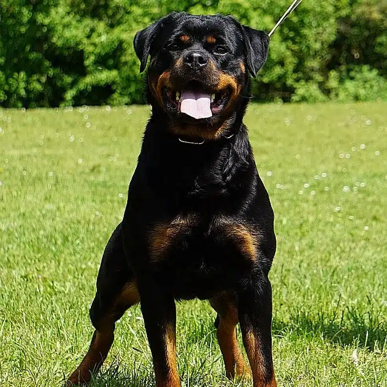 Kimba is one of those Rottweilers where that knows no stranger but still can be protective of her family. Of course she would rather spend her day playing than working so do not expect to see any biting out of this girl. I believe she might have even flunked out of bite school as you can see from her pictures.