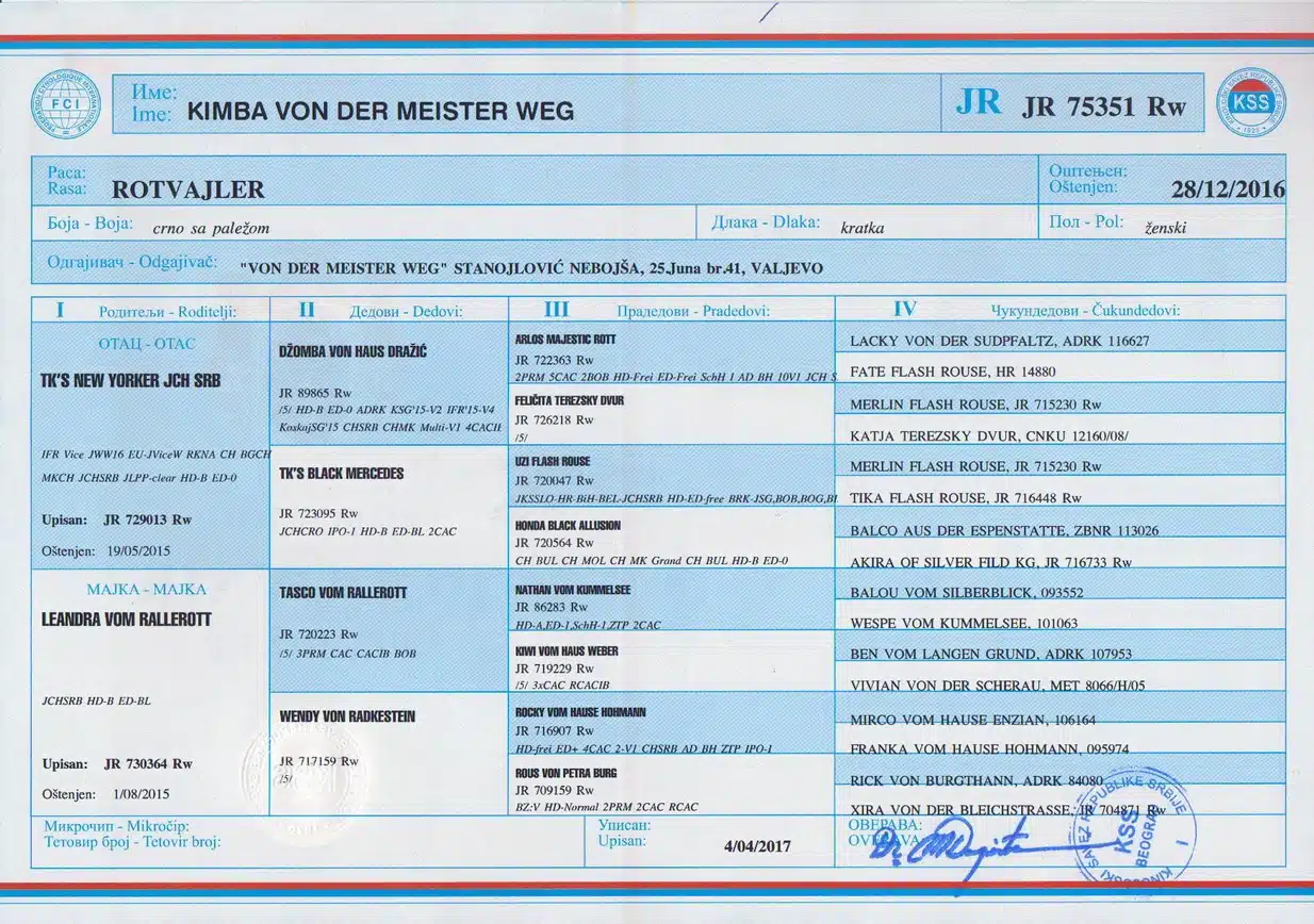 Kimba Von Der Meister Weg is the daughter of the World Famous TK’s New Yorker and the great-grand daughter of the 2015 I.F.R. World’s Best Producer DZomba Von Haus Drazic.